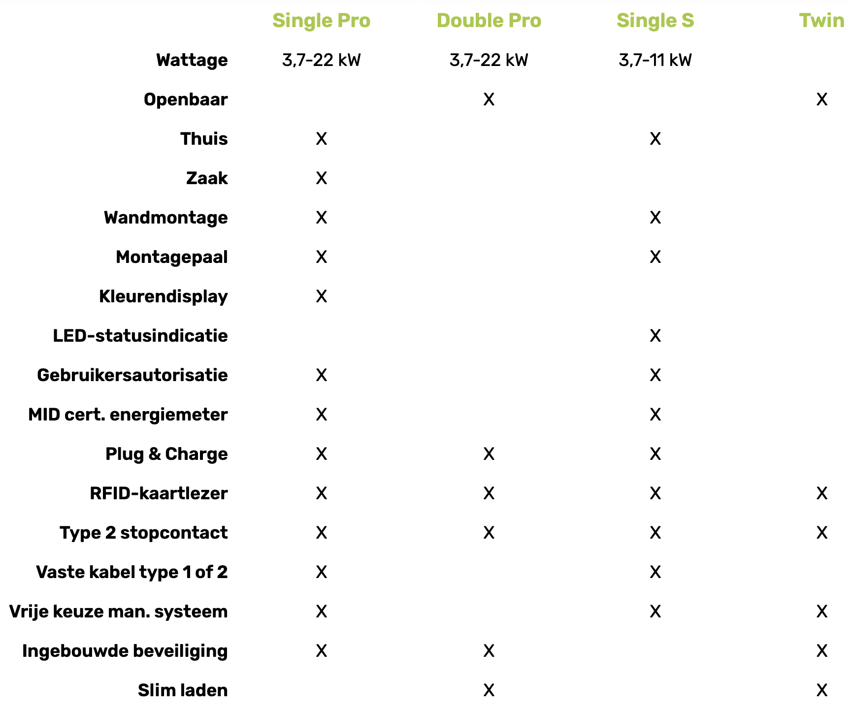 In dat geval kies je voor de Single S-line of Single Pro. De Pro beschikt over een hoger wattage en een kleurendisplay, waar de Single S-line over een LED-statusindicatie beschikt. Ook heeft de Pro een ingebouwde beveiliging, de S niet.